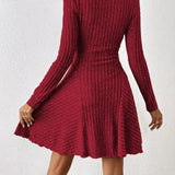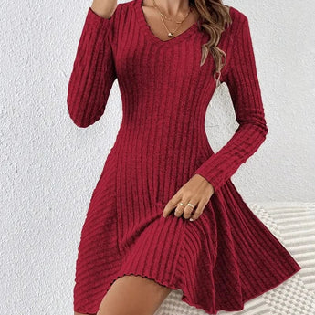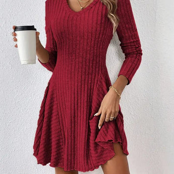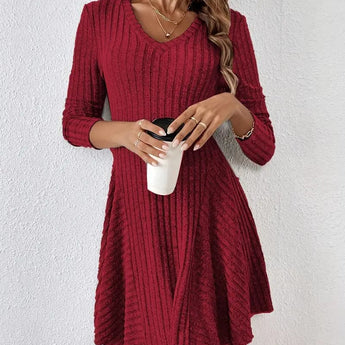 Elevate your wardrobe with this stunning, elegantly ribbed knit dress that combines comfort and style. The sophisticated ribbed texture adds a touch of refinement to your ensemble. The deep red hue is both classic and bold, making it a versatile piece for various occasions.