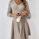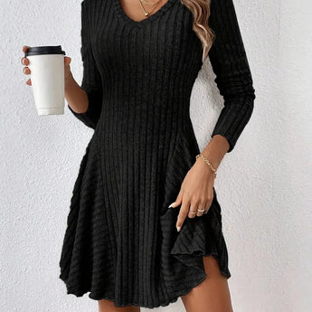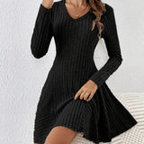 The premium ribbed knit quality ensures a comfortable and flattering fit. Long sleeves and a V-neckline create a chic and timeless silhouette. Perfect for casual outings, office wear, or evening events. Pair it with high heels and statement jewelry for a dressed-up look, or keep it casual with flat shoes.