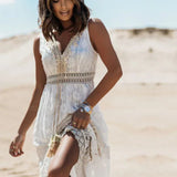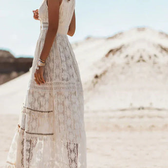 The Avencea Boho Maxi Dress is a stunning and feminine piece that captures the essence of Ibiza's bohemian spirit. This dress features a flowing and relaxed design adorned with delicate embroidery and lace accents, adding a playful touch to the classic maxi silhouette.