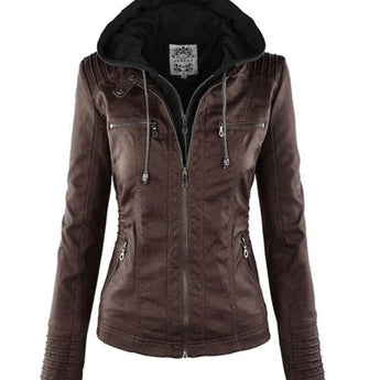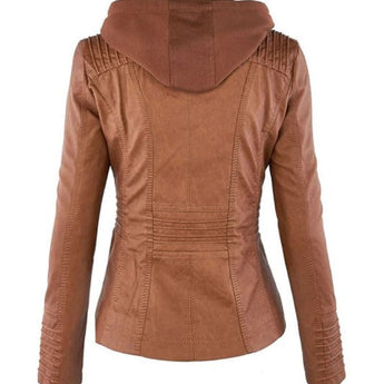 This amazing leather jacket blends functionality with chic appeal, making it a must-have addition to your wardrobe. The hood provides protection on windy days, while the tailored fit ensures you always look trendy. Whether meeting friends or enjoying a leisurely stroll, with this jacket, you'll be perfectly dressed and feel great at all times!