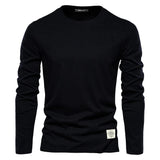 Avencea | Classic Long-Sleeved T-Shirt Made of 100% Cotton with O-Neck and Solid Color Pattern