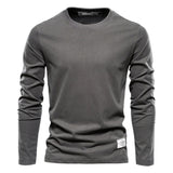 Solid Color Pattern: Featuring a solid color pattern, this long-sleeved T-shirt offers a clean, minimalist look that complements any outfit. It's a versatile staple that can be dressed up or down depending on the occasion.