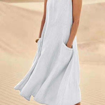 Our dress is voluminous and has a relaxed fit, flattering for all body shapes and sizes, complete with cute elastic pockets.