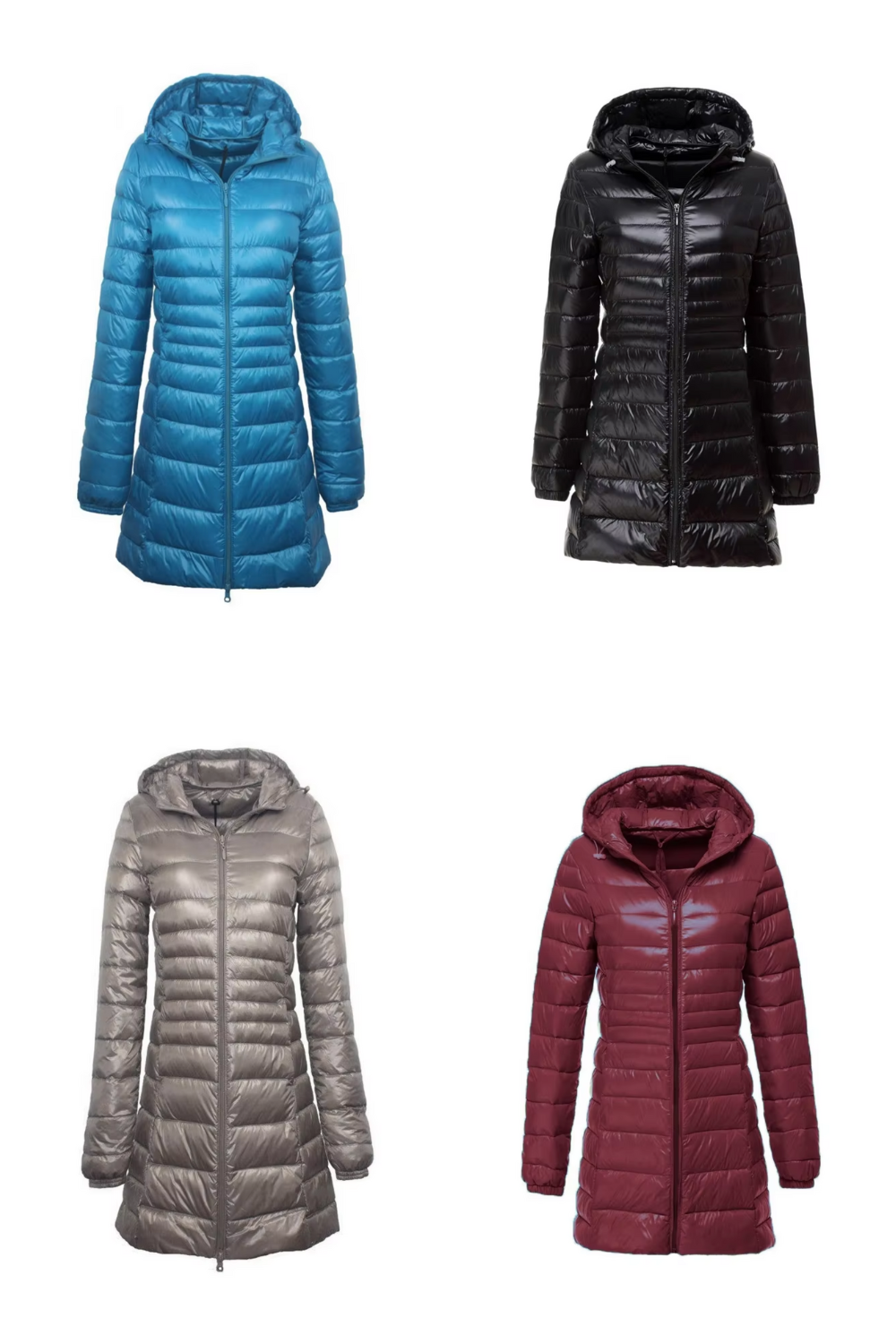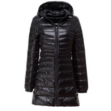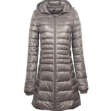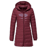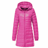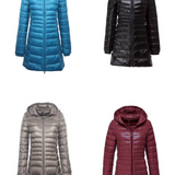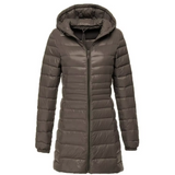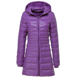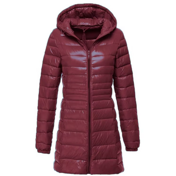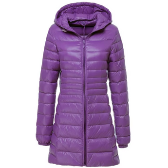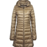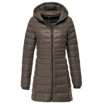 Experience ultimate warmth without the bulk of a heavy coat with our long down jacket for women, designed to keep you comfortable and cozy even on the coldest winter days. This lightweight down jacket features a padded construction that ensures excellent insulation while remaining light and easy to wear. The hooded design offers extra protection against the elements, and the sleek silhouette adds a touch of elegance to your winter wardrobe.