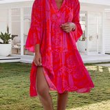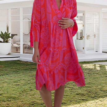 Avencea Dress with Geometric Boho Print and 3/4 Sleeves