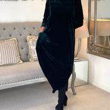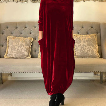 Meet Adelinda, a timeless piece for your wardrobe. This dress crafted from luxuriously soft velvet effortlessly merges elegance with comfort. Featuring practical pockets and a stylish collar, it exudes understated sophistication. Designed for a casual yet tailored fit, Adelinda delivers both style and ease, making it a versatile choice for any occasion. Elevate your ensemble with this high-quality garment that embodies both sophistication and functionality.
