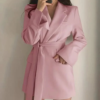 A chic waist belt highlights the waist for a flattering, adjustable fit. Two functional front pockets provide added convenience. The mid-length cut combines warmth and versatility. Whether for a stylish business meeting or a casual day out, this trench coat is an essential piece that merges practicality with a touch of effortless elegance.