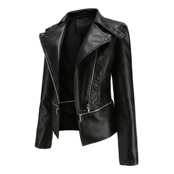 This jacket features an asymmetrical zipper, a removable hem, and a classic lapel design that looks especially chic when worn open. It includes a pocket spacious enough for your keys and other small essentials.