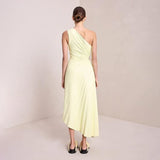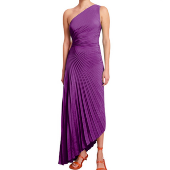 - Vibrant Colors: Let the vibrant hues and stylish design of our pleated asymmetrical neckline maxi dress brighten your wardrobe and enhance your fashion game.