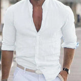 The design strikes a balance between classic and contemporary, featuring a stylish collar and a sleek button placket. The long sleeves with adjustable cuffs offer versatility, allowing you to achieve a relaxed or more polished appearance.