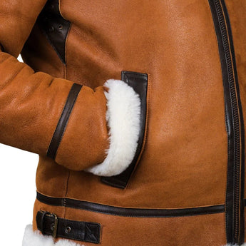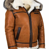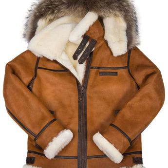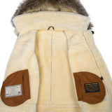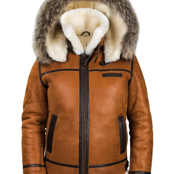 Discover the blend of genuine sheepskin combined with a soft hood featuring fur trim. This jacket delivers warmth while adding a touch of sophistication to your winter wardrobe.