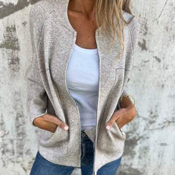 Add a touch of refined simplicity to your wardrobe with this chic, lightweight zip jacket featuring a round neck. 🌿 Designed for maximum comfort, this jacket is perfect for those days when you want to look stylish yet relaxed.