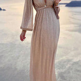 Avencea Long Dress with Elegant, Shiny Sequins for Champagne Wedding Ceremony