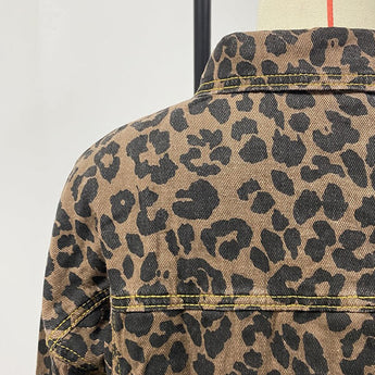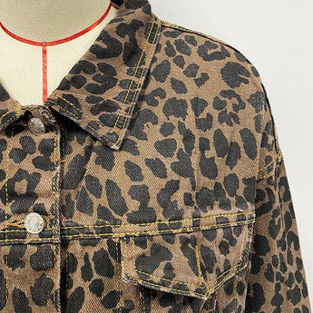 This eye-catching garment combines the classic appeal of denim with the striking allure of a leopard print. Perfect for adding a unique touch to your wardrobe, this jacket can effortlessly be paired with a variety of outfits, whether casual or sophisticated.