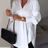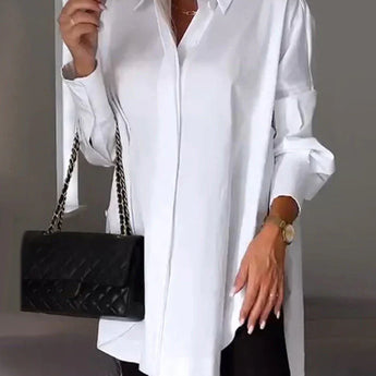 This shirt is a classic and adaptable piece that enhances your wardrobe. It features a refined lapel collar and long sleeves, making it ideal for both casual outings and formal events.