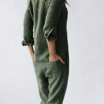 Experience the ultimate comfort and versatility with Avencea's Long-Sleeve Jumpsuit, perfect for any season! Crafted from a blend of linen, cotton, and polyester, this jumpsuit offers the ideal mix of style and ease.