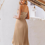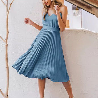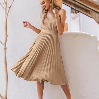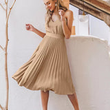 The pleated midi dress is a classic and stylish choice for any occasion. The beautifully pleated skirt exudes sophistication, while the sleeveless design keeps you cool and comfortable throughout the day. Made from a polyester blend, this dress is easy to care for, ensuring you always look great with minimal effort. Enhance your wardrobe with this versatile piece and enjoy effortless elegance with this dress by your side, ready to elevate your look no matter what the day holds.