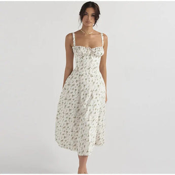 Make a statement and bask in the sunlight with this stunning corset dress. Featuring vibrant patterns and a flattering silhouette, it’s the ideal choice for spring and summer evenings. The heart-shaped neckline with delicate lacing exudes romance, while the side slit adds a touch of alluring charm. The fitted corset with a lovely bow hugs your waist, allowing you to feel confident and effortlessly stylish.