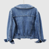 Delicate bow details adorn the front pockets, adding a playful touch to the design. A standout feature is the oversized lapel collar, which creates a flattering silhouette.