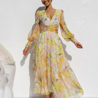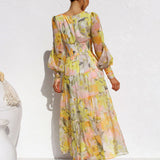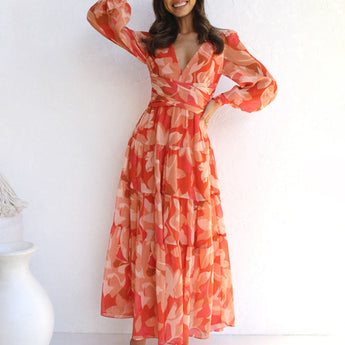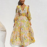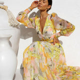 The Avencea - Radiant Long Sleeve Maxi Dress is the perfect selection for any event. Designed with a V-neckline, long sleeves, and a beautiful floral pattern, this dress exudes grace and sophistication with a hint of playful flair. The tiered construction and cross-banded waist create a flattering shape, ensuring you look effortlessly chic no matter the occasion. Be sure to check the size chart for an ideal fit!