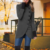 Introducing the latest fashion statement! This comfortable Avencea Stylish and Trendy Jacket features a distinctive diagonal open design adorned with a row of large, elegant buttons to keep you warm on chilly days.