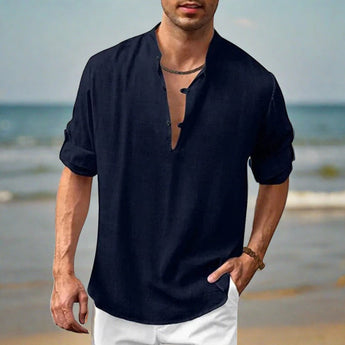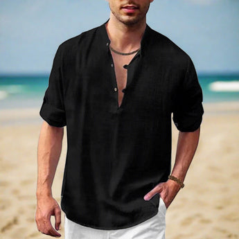 Crafted from premium linen fabric, this shirt combines breathability and durability, making it an essential addition to your summer wardrobe. Its lightweight design ensures you stay cool during warmer months while looking effortlessly chic.
