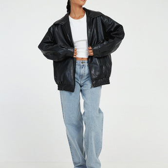 Discover the perfect blend of fashion and comfort with the Avencea Oversized Jacket. This jacket features a relaxed design crafted from premium leather, making it the perfect choice for women seeking a stylish and comfortable outfit.