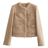 • Timeless Sophistication: The Avencea Tweed Jacket radiates classic elegance with its refined beige color and sparkling gold buttons, ensuring it remains a fashionable staple for years to come.