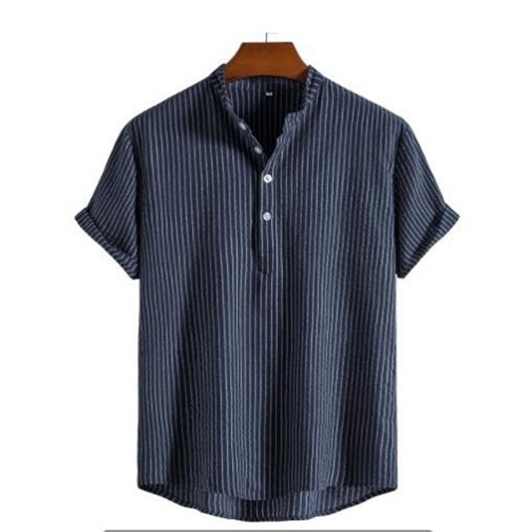 The Beige Men's Short Sleeve Pleated Shirt is a relaxed fit summer top that combines elegance and style, making it a standout piece in any wardrobe. Known as the Darwin Stylish Shirt for Men, this shirt is crafted from premium breathable polyester fabric, ensuring unparalleled comfort and versatility. Each seam is meticulously finished to guarantee a first-class fit, making it a reliable choice for any occasion. The bold stripes add a modern touch to the shirt, ensuring it captures attention wherever you go. Available in a variety of colors including Blue, Wit, Black, and Khaki, and sizes ranging from S to 2XL, this shirt caters to diverse style preferences and body types. Its timeless design makes it suitable for both formal meetings and casual gatherings, allowing you to showcase your individual style effortlessly. The Darwin Stylish Shirt for Men is not just a piece of clothing; it's a statement of sophistication and modernity, perfect for those who appreciate quality and style in their attire.