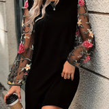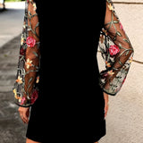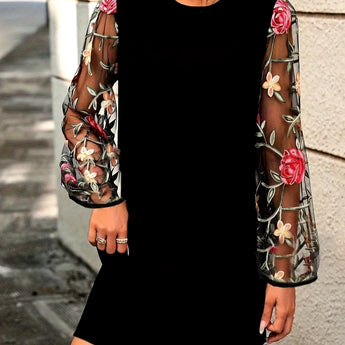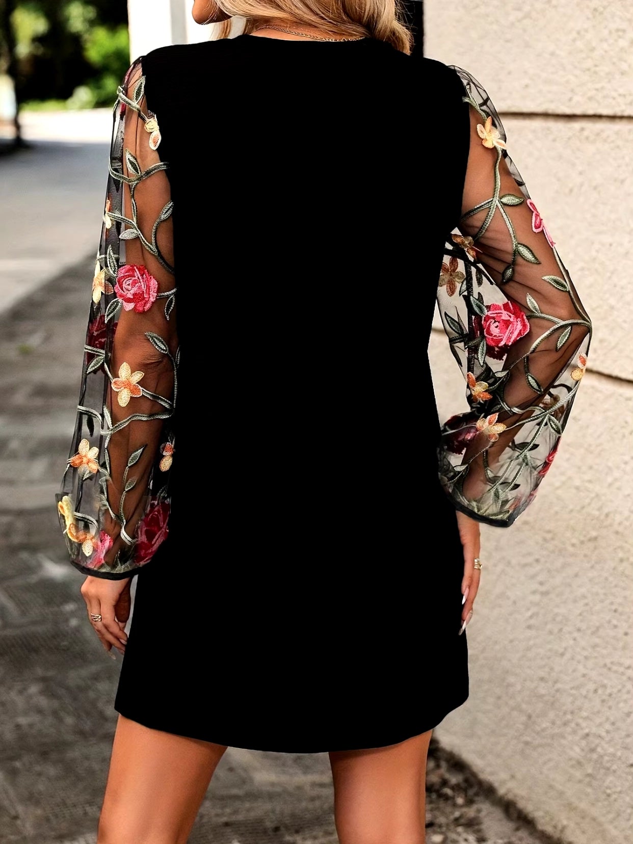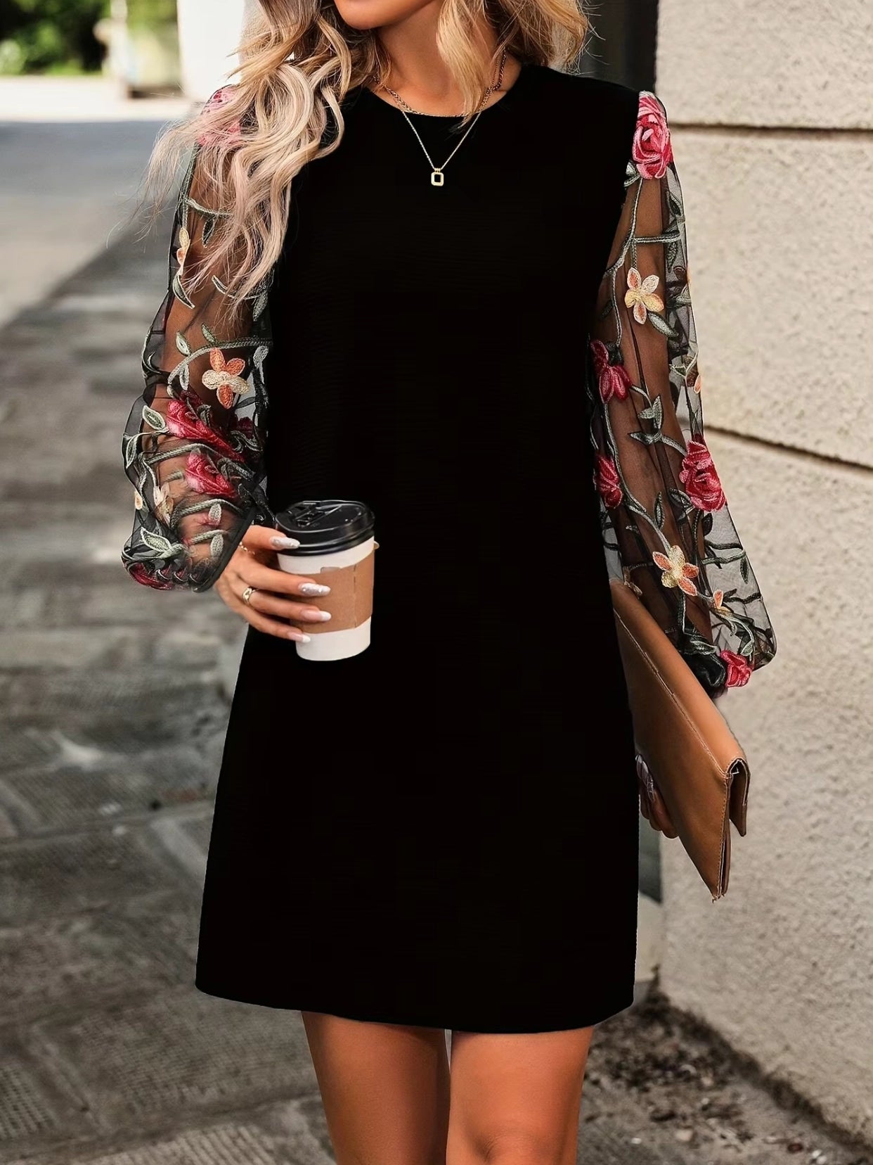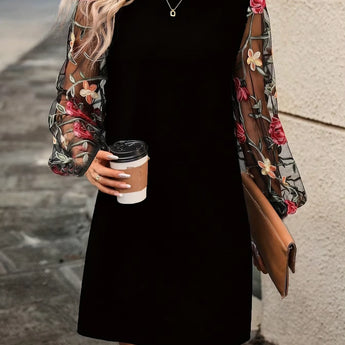 1 - Black Floral Embroidery Sheer Sleeve Dress - Chic Fall Fashion |