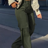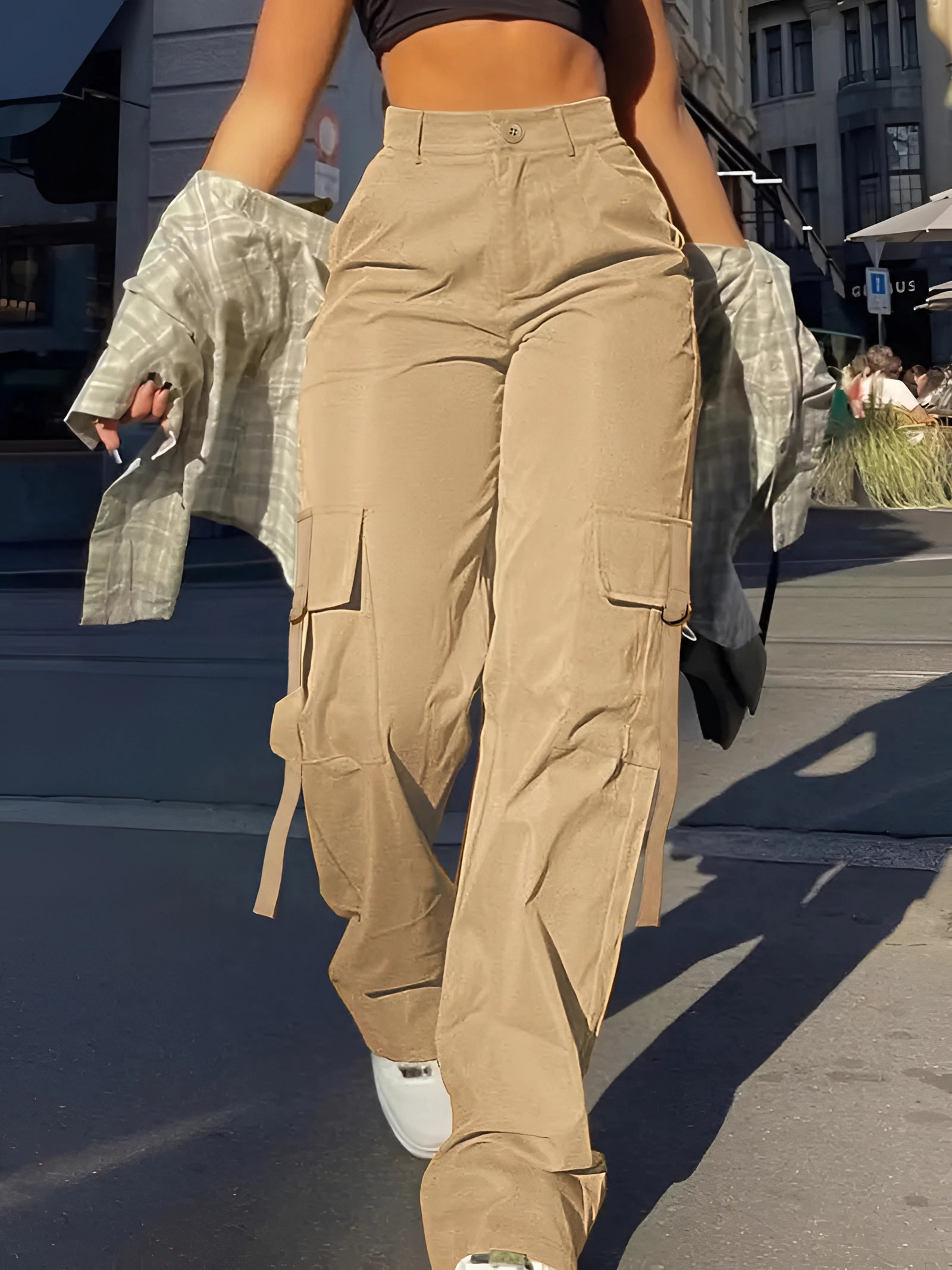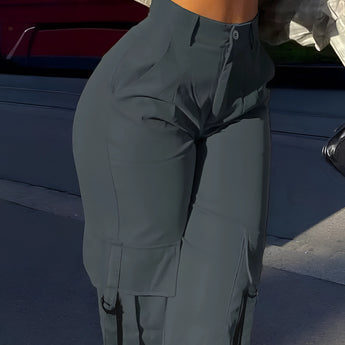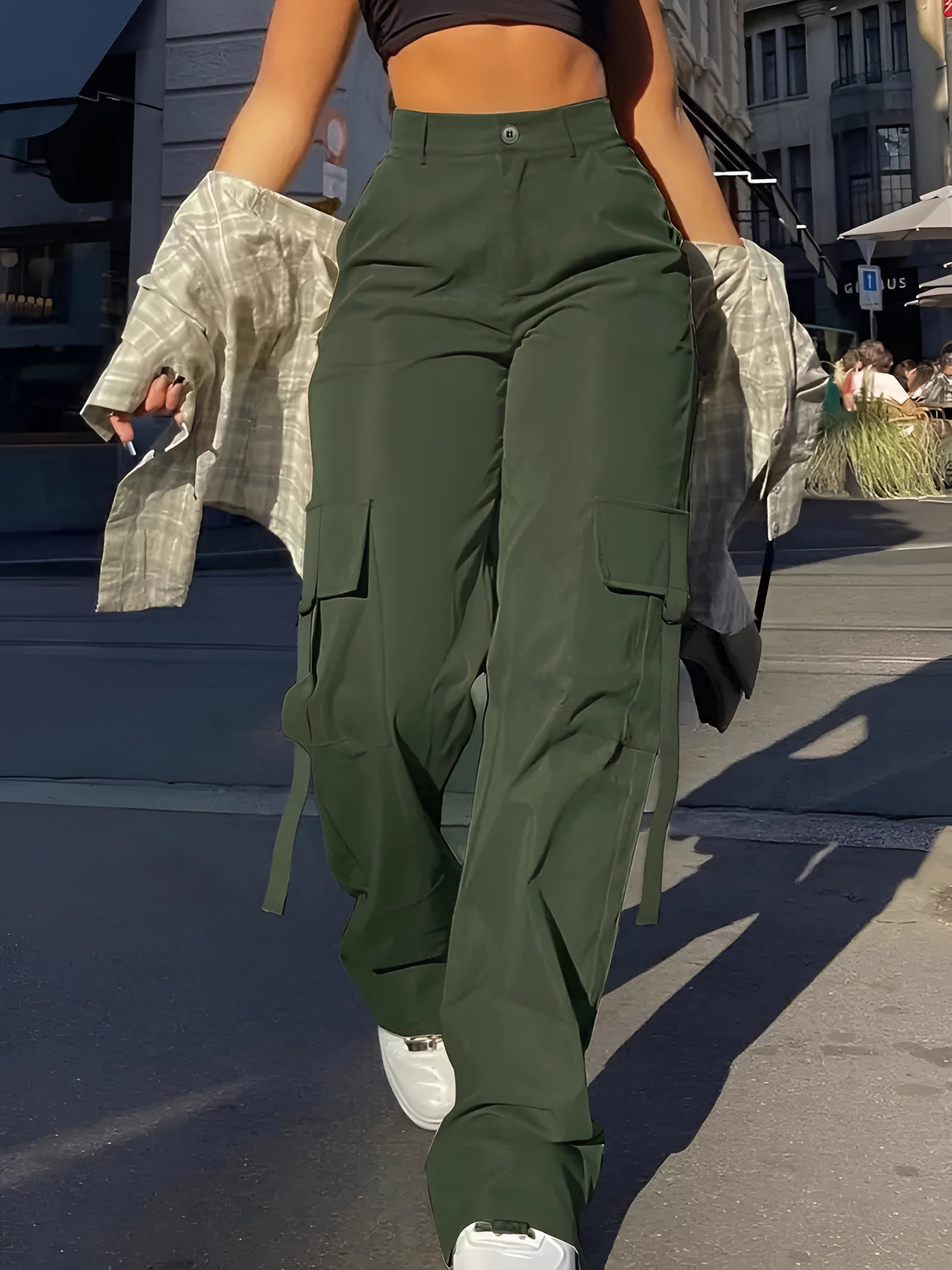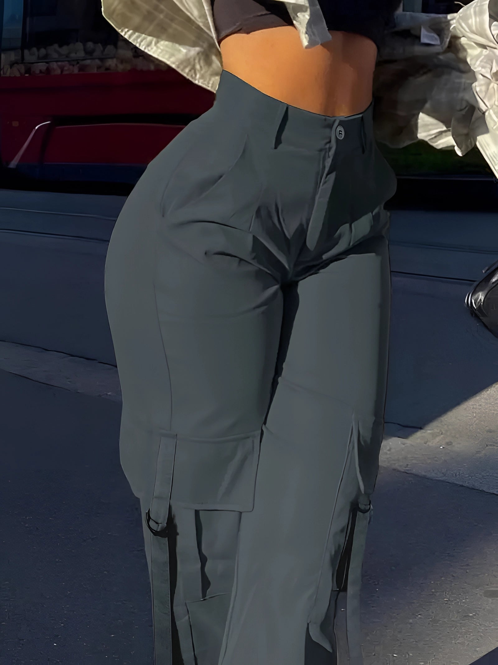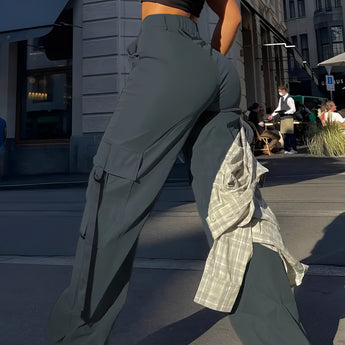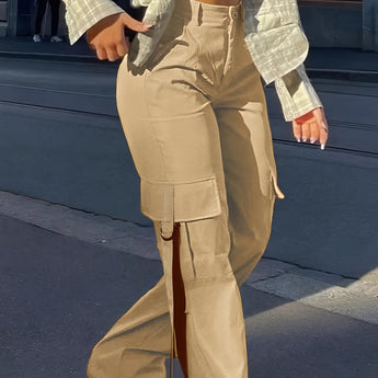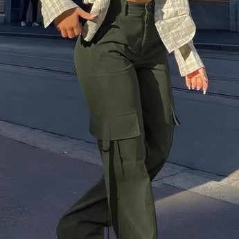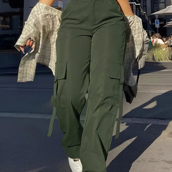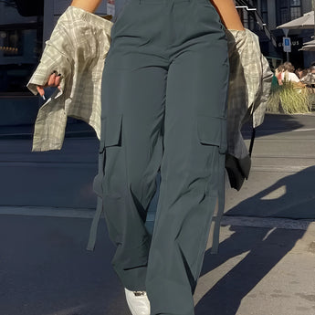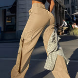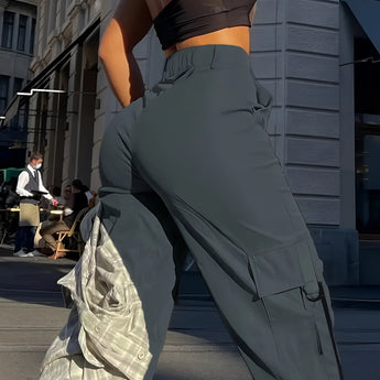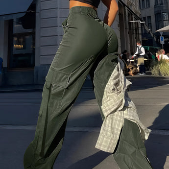 The Black Wide-Leg High-Waist Cargo Pants for women are a quintessential piece of urban streetwear, offering a seamless blend of style and functionality. Available in a range of colors including Black, Military Green, Persimmon, and Dark Gray, these pants cater to diverse fashion preferences. The size options from XS to XL ensure a perfect fit for every body type. Crafted from a lightweight and breathable fabric, these cargo pants are ideal for the warmer months of spring and summer, providing a relaxed fit that guarantees all-day comfort. The solid color design enhances their versatility, making them suitable for casual wear. One of the standout features of these pants is their practical pockets, which add to their functionality without compromising on style. The breezy design and effortless everyday style make them a top choice for those seeking comfort and fashion in one package. Additionally, the pants come with the added benefit of free shipping, making them an even more attractive option for fashion-forward individuals. Whether you're dressing up for a casual outing or simply enjoying a day out in the city, these cargo pants are designed to meet your style needs while ensuring maximum comfort.