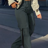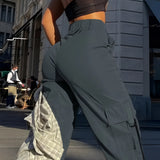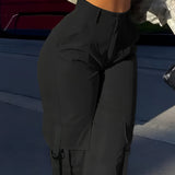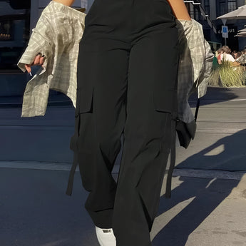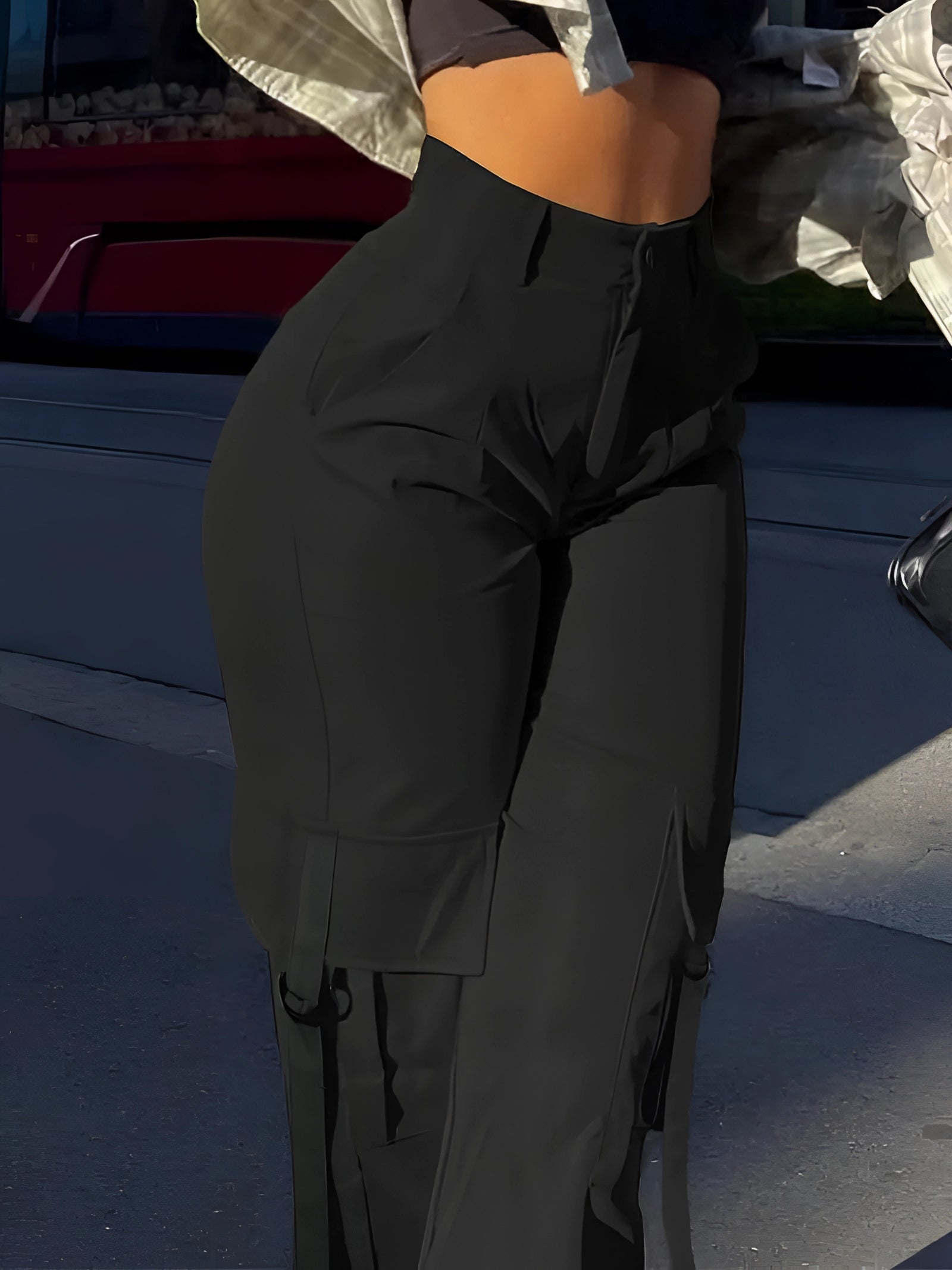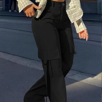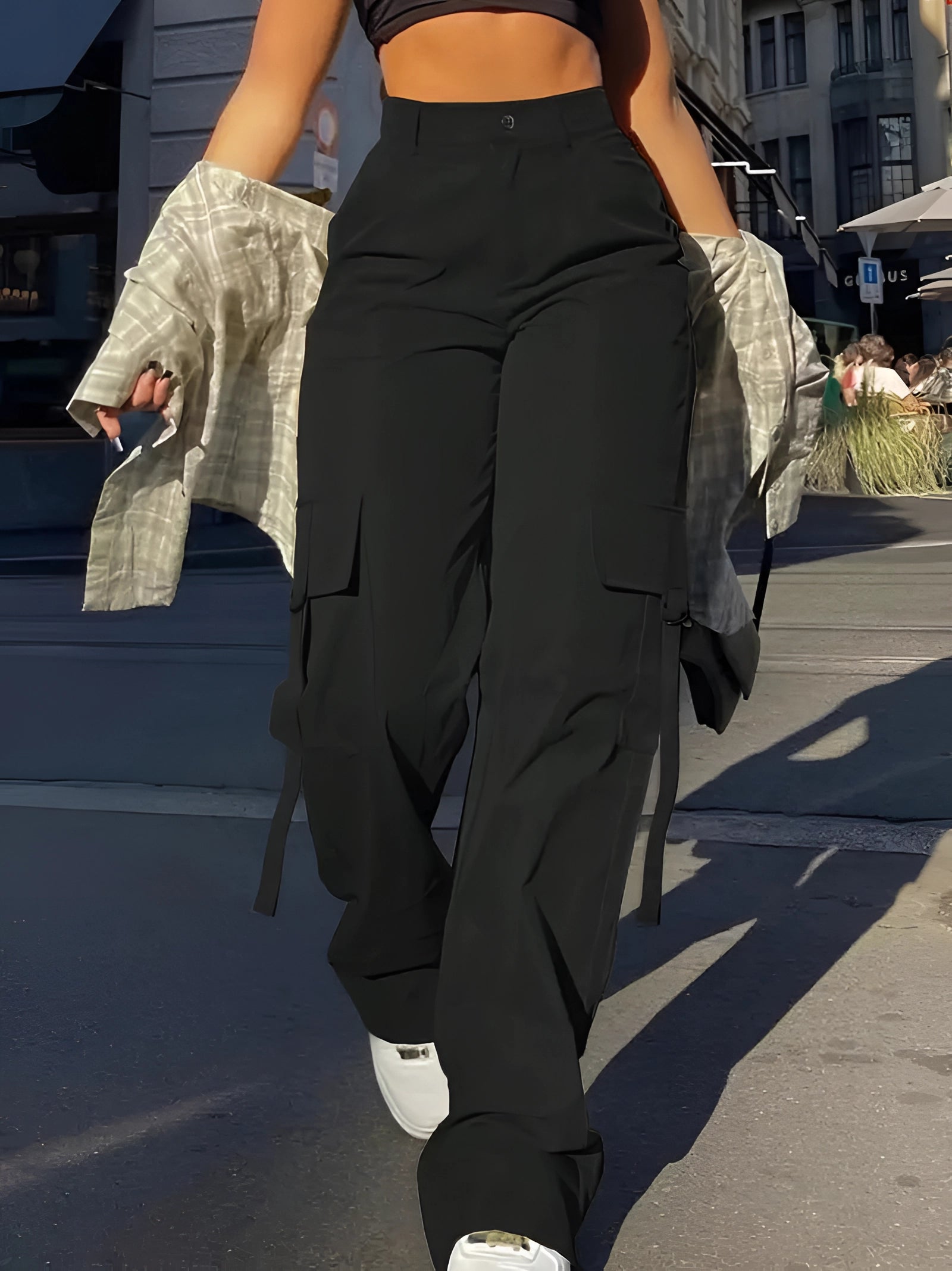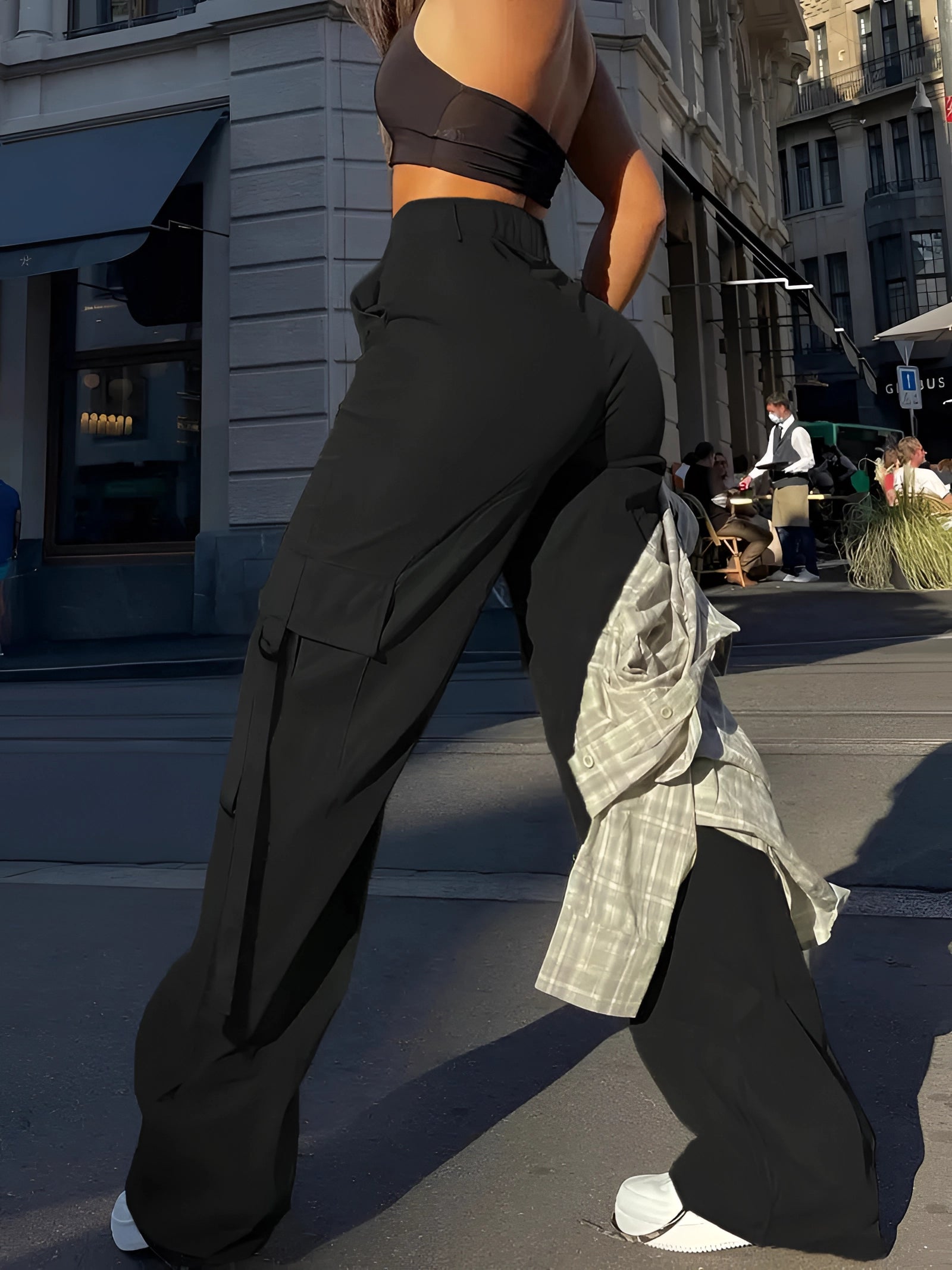 Black Wide-Leg High-Waist Cargo Pants - Women's Urban Streetwear