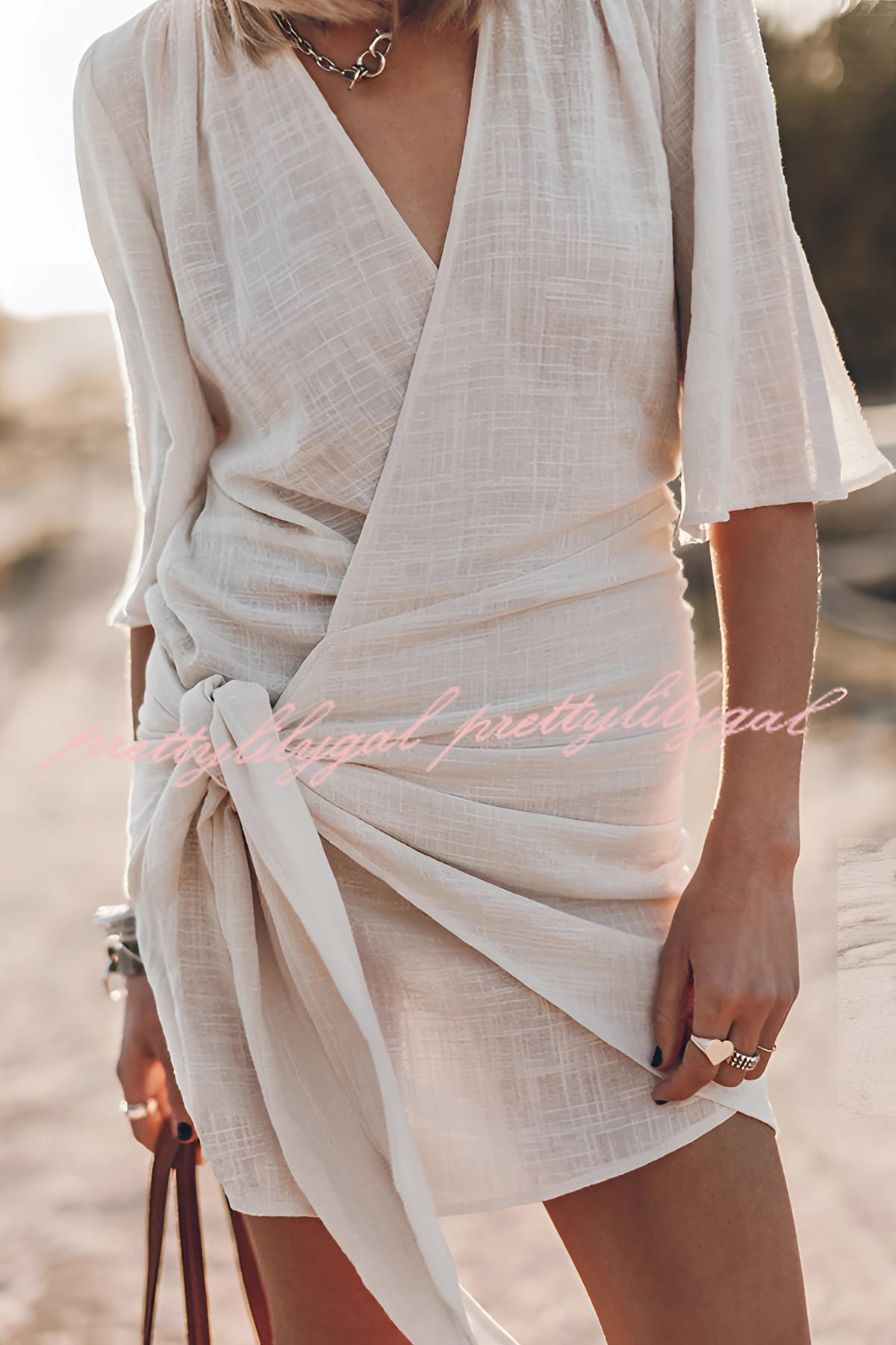 The Boho-Chic V-Neck Mini Dress, also known as the Helena dress, is a quintessential piece for those who appreciate effortless elegance and comfort. Crafted from a refreshing blend of cotton and linen, this dress is designed to keep you cool and stylish during the warm summer months. Its wrap-around, knotted design adds a bohemian flair, making it a standout piece in any wardrobe. The mini length of the dress exudes youthful energy, making it ideal for casual outings and beach cover-ups. Available in a variety of colors including Beige, Nero, Multicolor, Blue, Pink, Gray, Yellow, and Red, it offers a palette for every mood and occasion. The dress comes in sizes ranging from S to XL, ensuring a fit for different body types. The Helena dress is not just about style; it is about finding the perfect balance between comfort and fashion. Its easy-to-wear nature makes it a versatile addition to your wardrobe, perfect for those spontaneous summer adventures. Whether you're strolling along the beach or enjoying a casual day out, this dress promises to be your go-to choice for a chic and relaxed look.