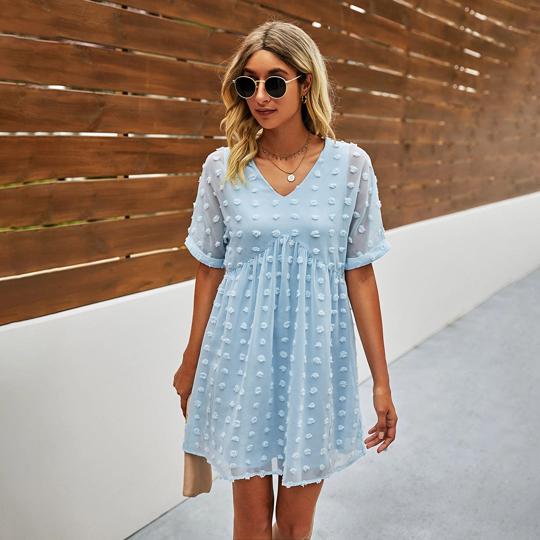 The Burgundy Floral Mini Dress is a stunning piece of lightweight summer fashion that effortlessly combines vintage charm with contemporary elegance. This dress, known as the ANDI Moderne mini-jurk, is crafted from high-quality polyester, ensuring a perfect blend of comfort and style. Available in a variety of colors including Beige, Light Green, Blue, Marine Blue, and Orange, it offers a subtle sophistication that makes it versatile for various occasions. The dress features beautifully embroidered bell sleeves with floral patterns and intricate crochet details, adding a romantic and feminine touch that enhances its overall impact. The V-neckline and short sleeves provide a flattering fit, while the A-line silhouette and mini length contribute to a playful and youthful look. Designed to keep you cool and comfortable on warm summer days, the lightweight and breathable fabric is ideal for casual outings, parties, or even a romantic date. The timeless design of the ANDI Moderne mini-jurk makes it a versatile addition to your wardrobe, easily adaptable to your personal style. Pair it with sandals for a casual look or dress it up with heels and statement jewelry for a more formal occasion. This dress is sure to capture attention and leave a lasting impression, making fashion dilemmas a thing of the past and welcoming effortless style into your life.