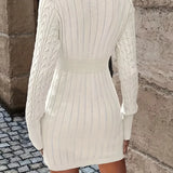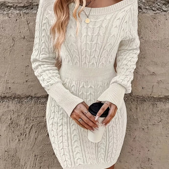 1 - Cable Knit White Sweater Dress - Chic Long Sleeve Mini Fashion |