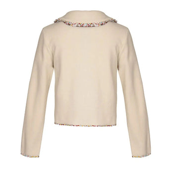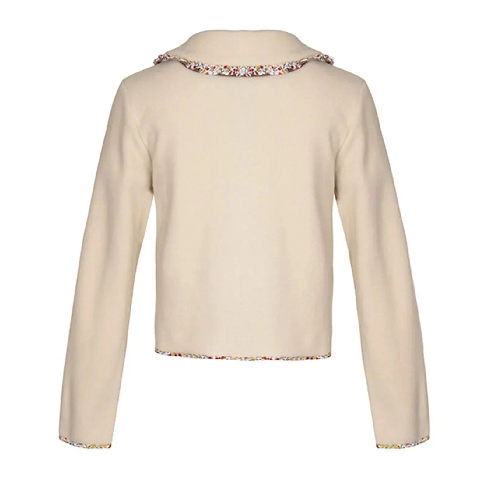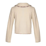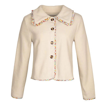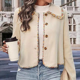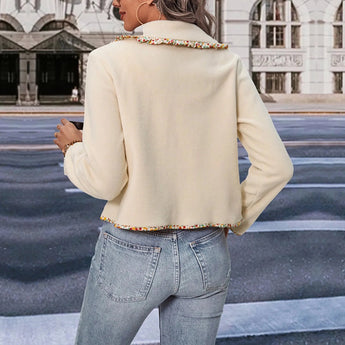1 - Casual Chic Beige Cropped Jacket with Contrast Trim & Buttons |