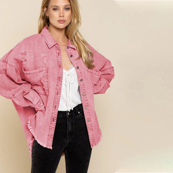 1 - Coral Oversized Frayed Denim Jacket - Trendy Spring Street Style |