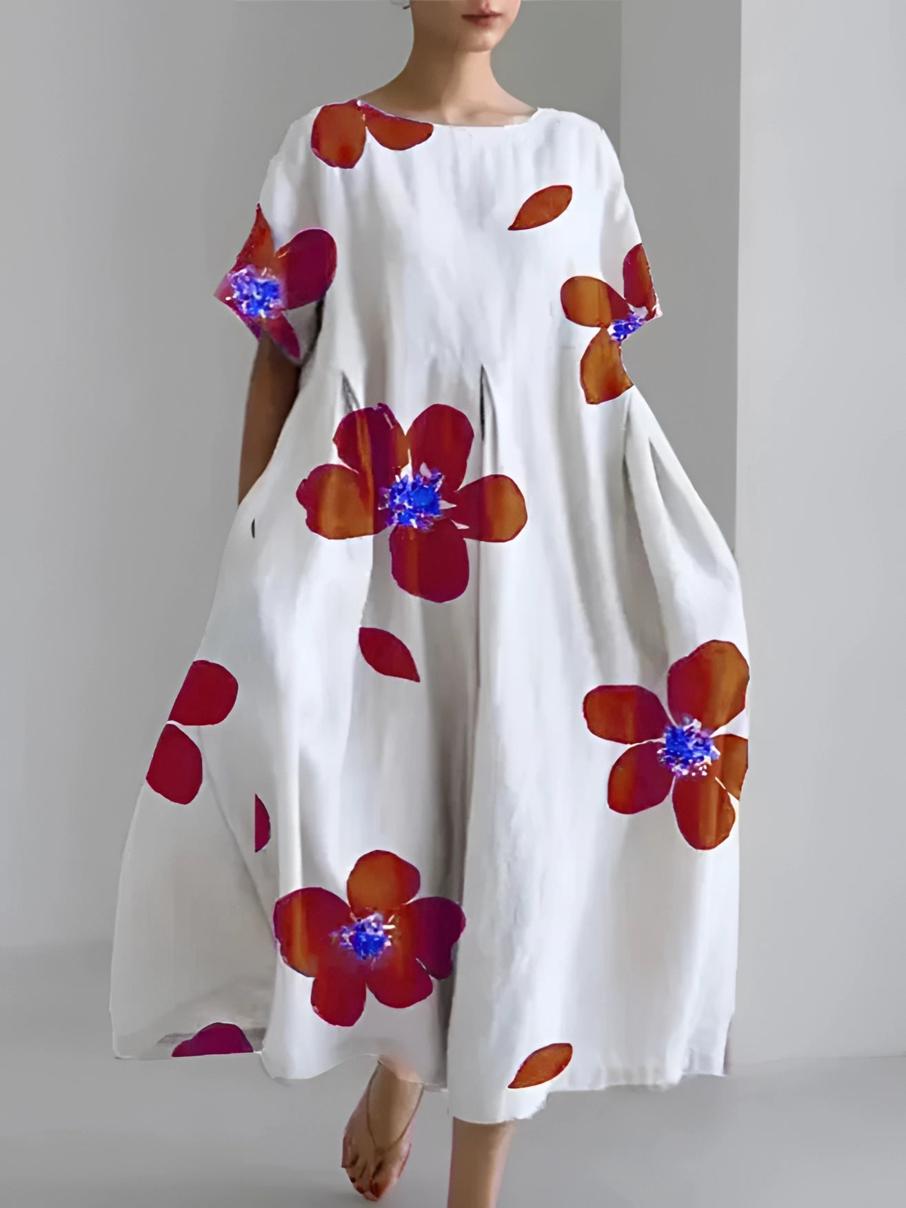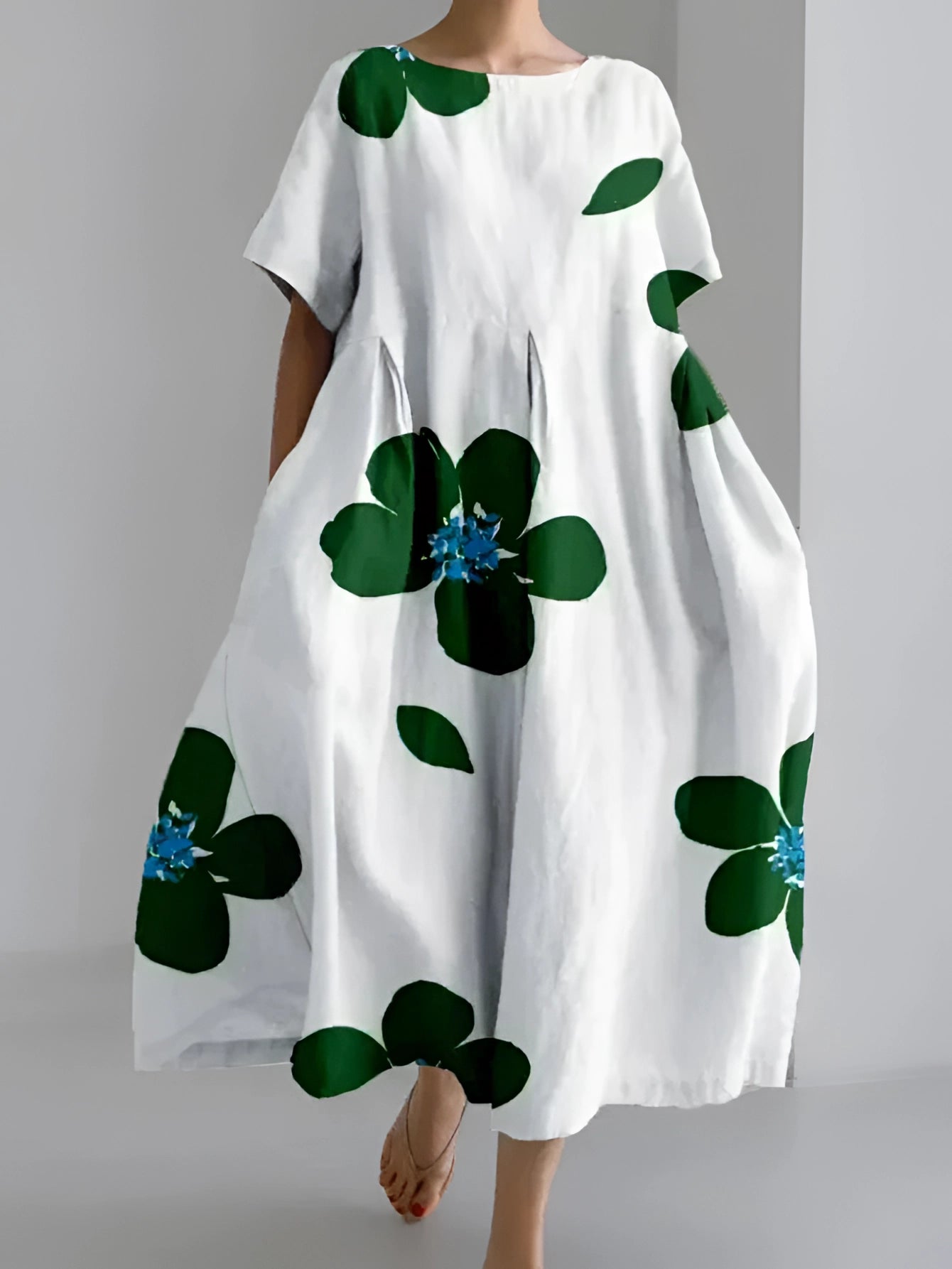 1 - Eco-Friendly Oversized Floral Dress - White Green Leaf Print |