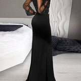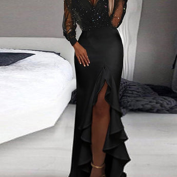 Elegant, Shiny Evening Dress in Black with Sequins and Ruffled Hem
