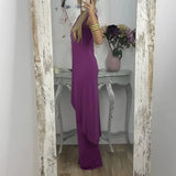 The Elegant Sleeveless Purple Maxi Dress is a stunning choice for formal evenings and bridesmaid duties, offering a blend of sophistication and allure. Available in a variety of colors including Green, Beige, Black, Purple, and Red, this dress caters to diverse style preferences. It comes in sizes ranging from S to 3XL, ensuring a perfect fit for every body type. The dress is designed to be fluid and elegant, enhancing the wearer's attractiveness with its feminine charm. Its unique design is crafted to impress, drawing compliments with its beautiful and elegant style. The fabric is of high quality, providing comfort and ease of wear, making it a bold yet seductive choice for any occasion. The dress is not only visually appealing but also practical, as it is comfortable and easy to wear. Additionally, the dress comes with the benefit of free shipping, adding value to this already enticing offer. Whether for a formal event or as a bridesmaid dress, this maxi dress is sure to make a statement with its elegant design and comfortable fit.
