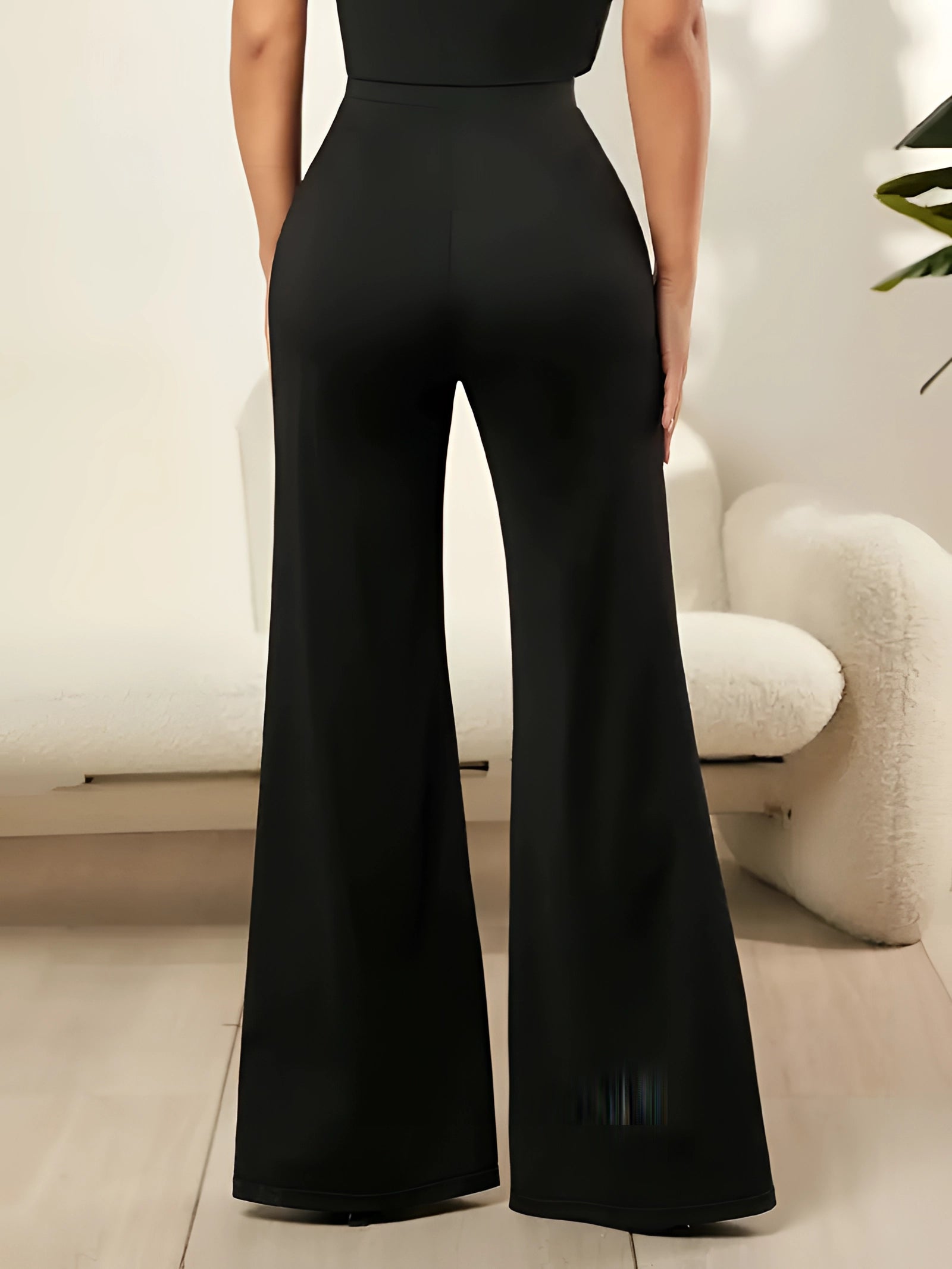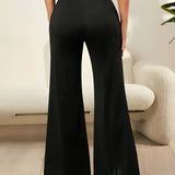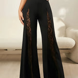 1 - Elegant Women's High Waist Lace Trim Flare Pants |