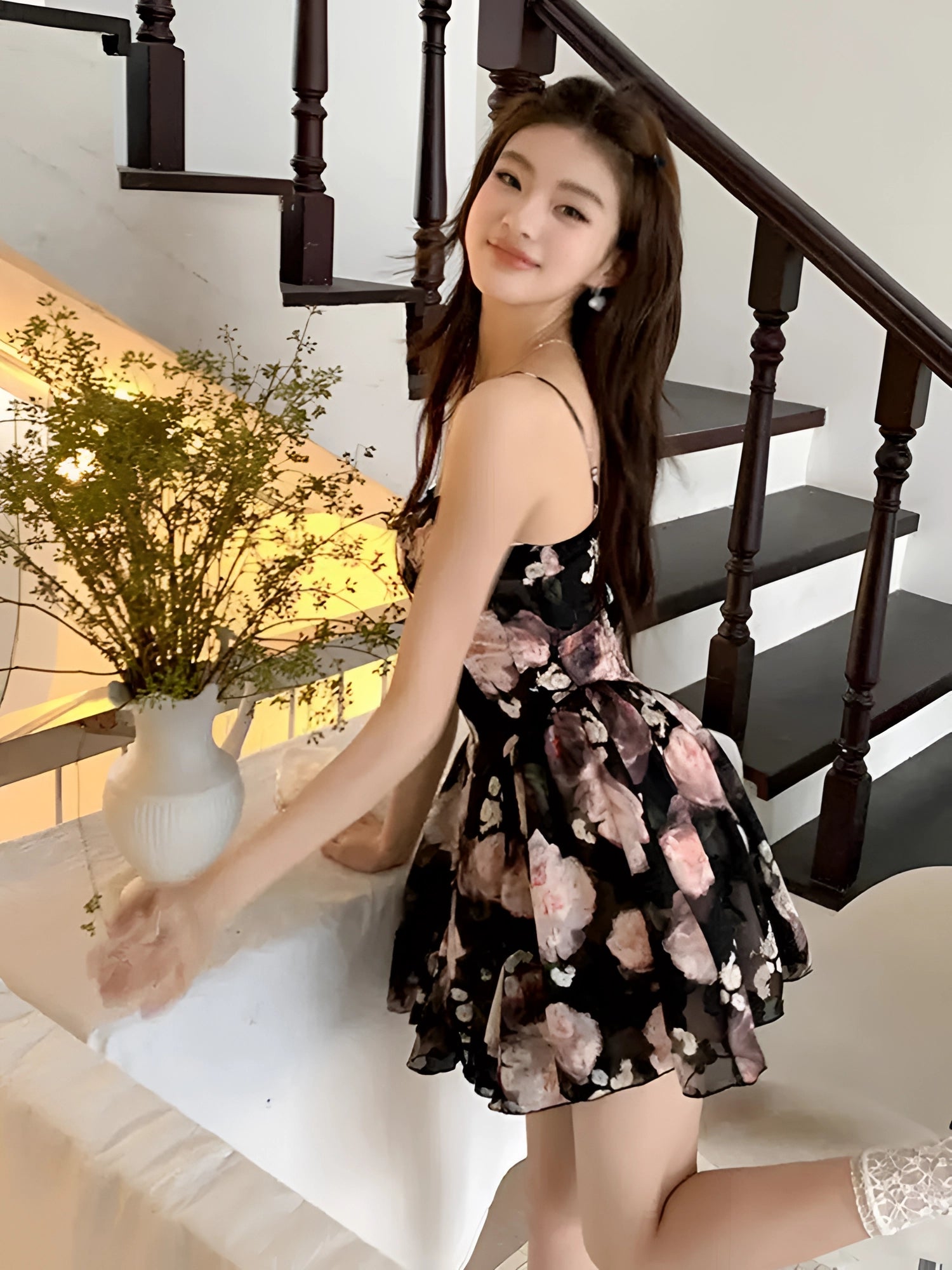 1 - Floral Strapless Mini Dress - Elegant Black Party Wear |