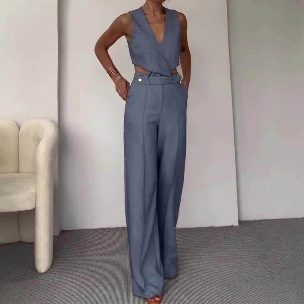 1 - Light Blue Sleeveless High-Waist Backless Formal Jumpsuit |