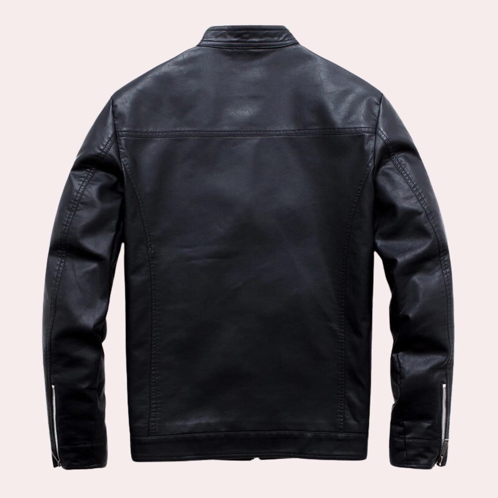 The Men's Black Leather Motorcycle Jacket is a stylish and versatile piece that stands out with its unique zipper and button collar design. Crafted from high-quality synthetic leather, this jacket is the epitome of timeless style combined with modern functionality, making it an ideal choice for fashion-conscious men. Available in a classic black color, it offers a range of sizes from M to 5XL, ensuring a perfect fit for every body type. The jacket features a polyester lining, providing comfort and durability, while the stylish lapels add a touch of sophistication to any outfit. One of the key selling points of this jacket is its multiple pockets, which offer convenience and practicality for carrying essentials. Additionally, the robust zipper ensures a secure closure, enhancing the jacket's functionality. Designed to provide a sleek and masculine look, this jacket is perfect for any occasion, whether you're riding a motorcycle or simply stepping out for a casual outing. Its combination of style, comfort, and practicality makes it a must-have addition to any wardrobe.