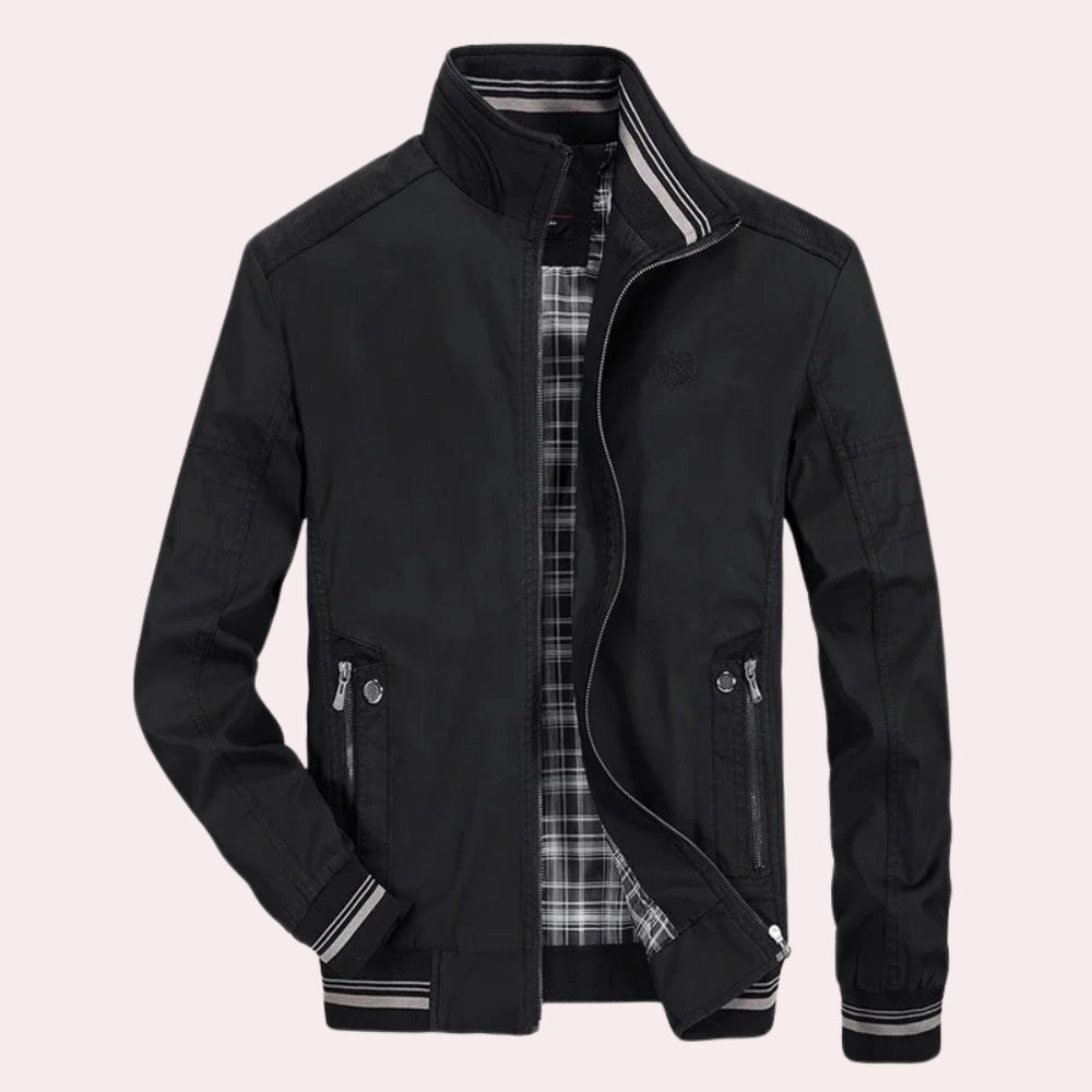 1 - Men's Black Lightweight Bomber Jacket - Casual Zip-Up Spring Fashion |