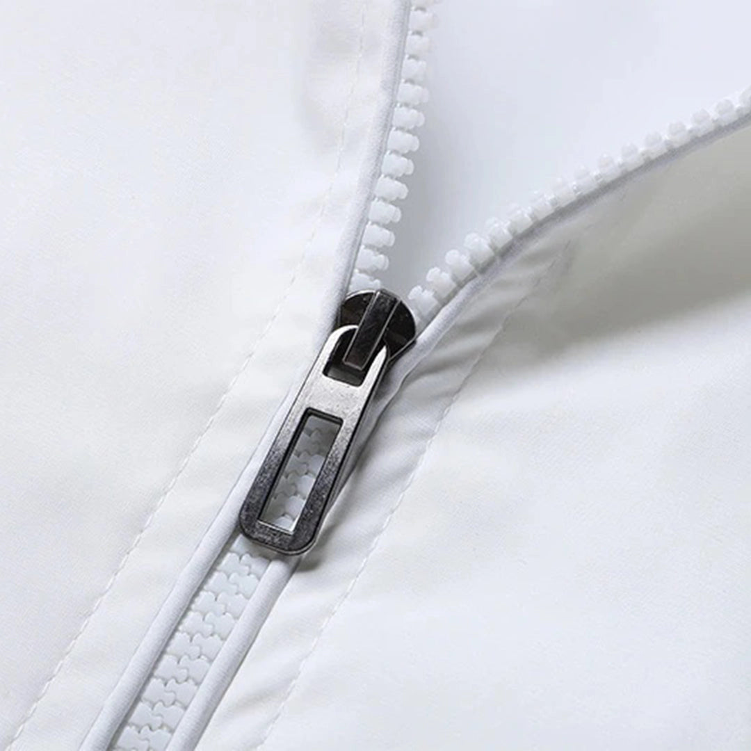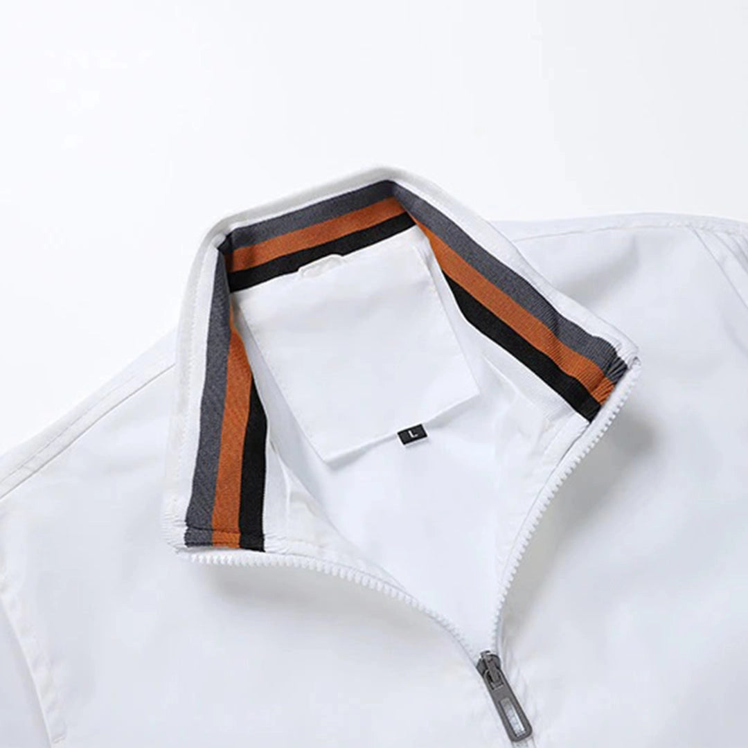 1 - Men's Lightweight White Jacket with Striped Collar and Zipper |