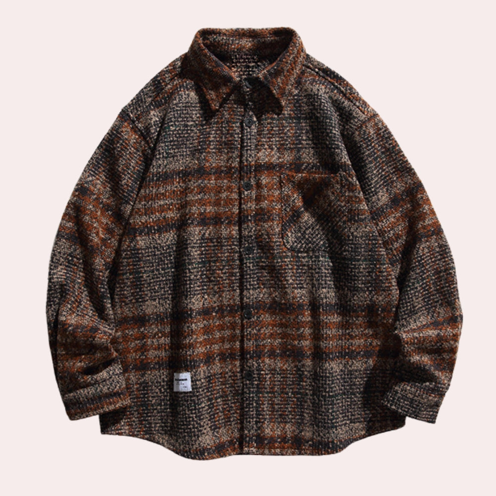 Introducing the Men's Navy Plaid Wool Blend Overshirt, a trendy streetwear jacket that seamlessly combines style and functionality. This Dimitrios Comfortable Plaid Men's Jacket is crafted from a high-quality polyester blend, ensuring both warmth and durability, making it an ideal choice for the colder months. The overshirt is available in two versatile color options, Blue and Brown, allowing you to choose the perfect hue to complement your wardrobe. With sizes ranging from S to XL, this jacket caters to a wide range of body types, ensuring a comfortable fit for everyone. The design of this overshirt is both casual and sophisticated, making it suitable for various occasions. Pair it with sneakers for a laid-back look or dress it up with formal shoes for a more polished appearance. The jacket's plaid pattern adds a touch of classic style, while the wool blend material provides a cozy feel. Whether you're heading out for a casual day with friends or attending a more formal event, this overshirt is a versatile addition to your wardrobe. Its unique selling points include its high-quality material, versatile color and size options, and its ability to be styled for both casual and formal occasions. This makes it a must-have piece for any fashion-forward individual looking to stay warm and stylish throughout the season.