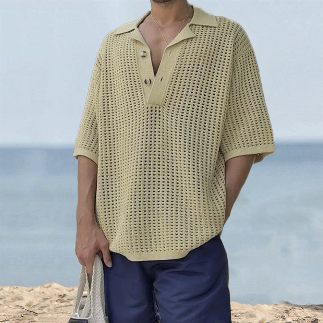 1 - Men's Olive Green Crochet Polo - Breathable Eco-Friendly Summer Shirt |