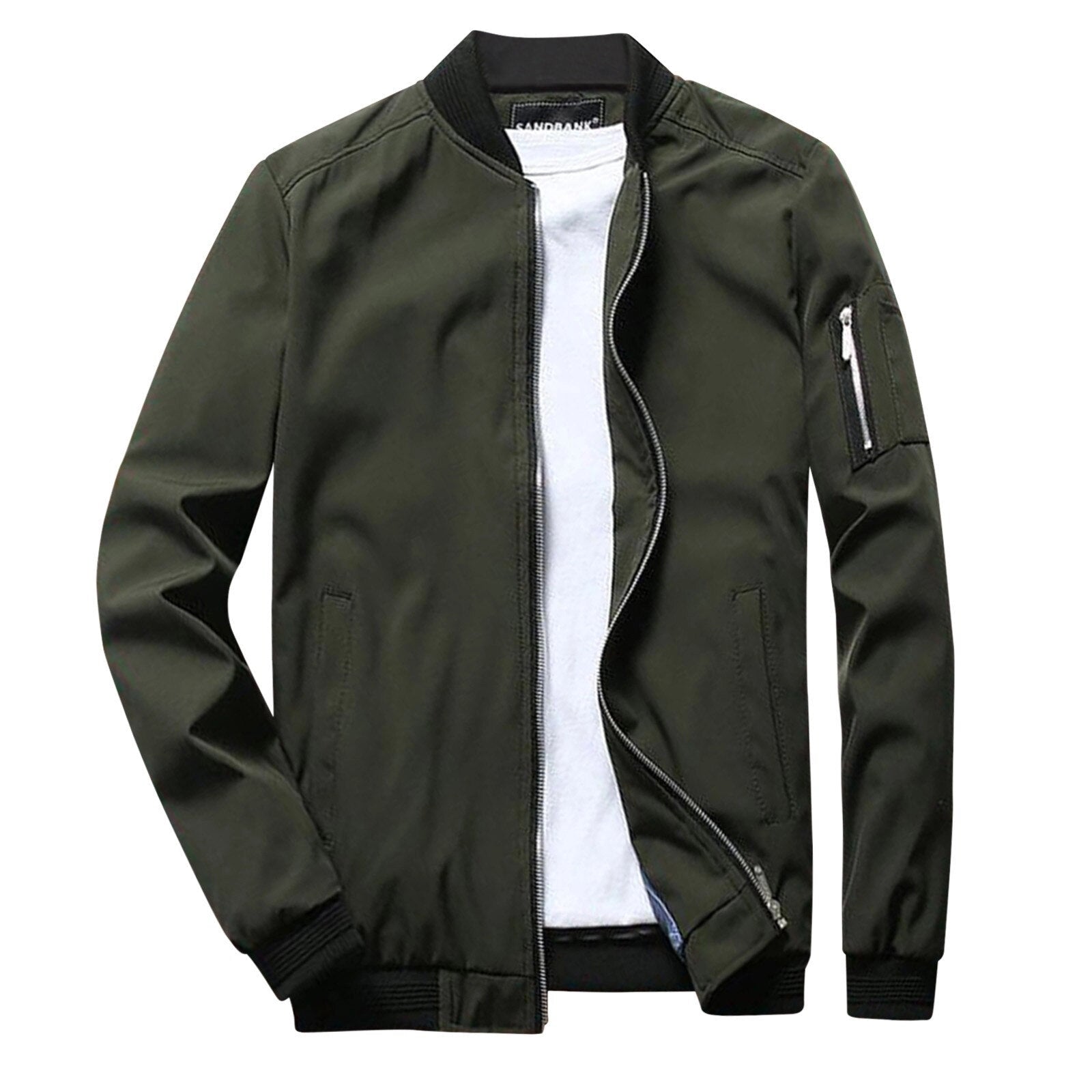 1 - Men's Olive Green Lightweight Bomber Jacket with Zipper Pocket |
