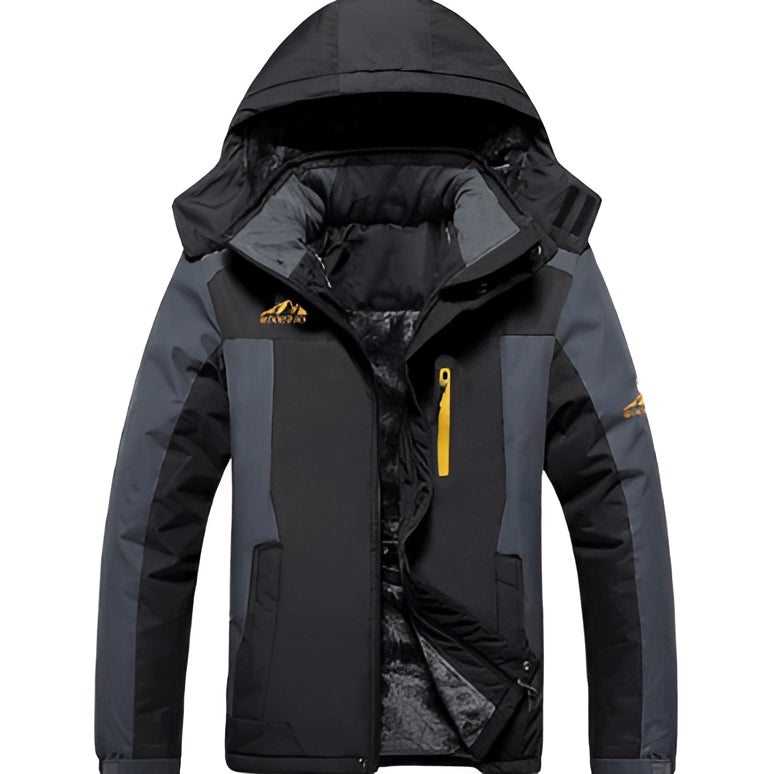 1 - Men's Waterproof Insulated Hooded Winter Jacket - Black/Grey |